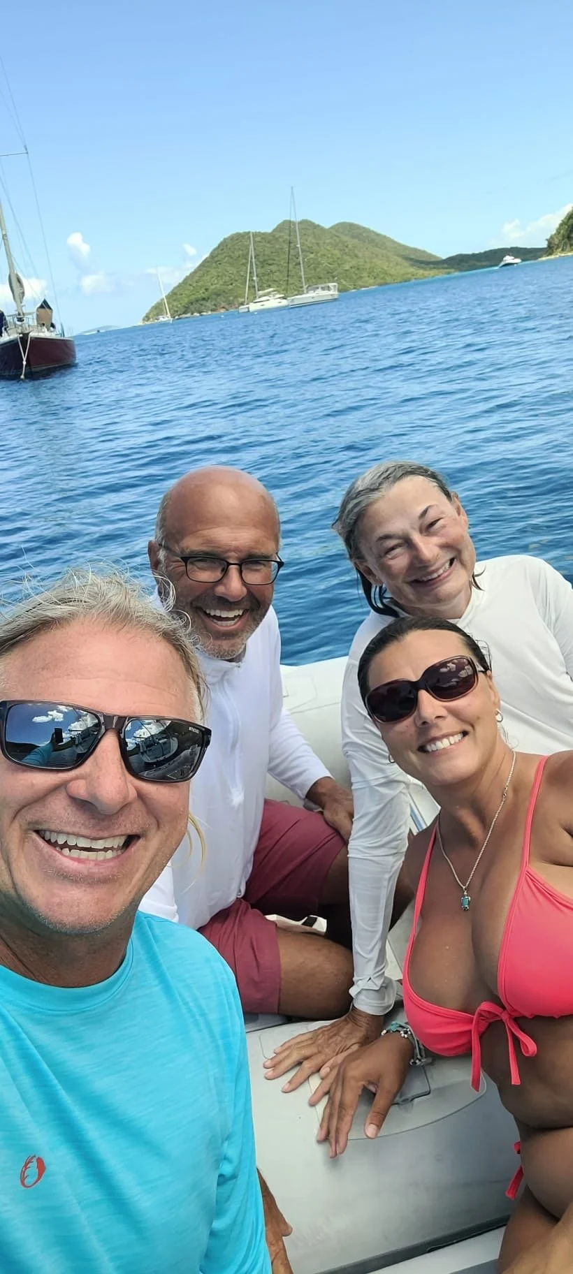 Looking for a few quiet R&R days, we opted to leave St. Thomas for Christmas Cove. Friends recommended Christmas Cove for its beauty but more importantly its floating “food truck” with the best pizza ever. Our first day over we phoned in our order, got into the dingy and went to pick it up (delivery was an option). After a few bites, we agreed. Our pizza was the best since leaving Jersey City.